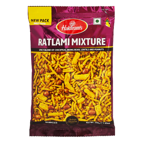 Haldiram Ratlami Mix is a popular Indian snack known for its spicy and savory flavor. This delightful blend includes a mix of fried ingredients, such as gram flour noodles, peanuts, and spices, creating a zesty and satisfying snacking experience. It’s a perfect accompaniment for tea or a great option to spice up your snack time.