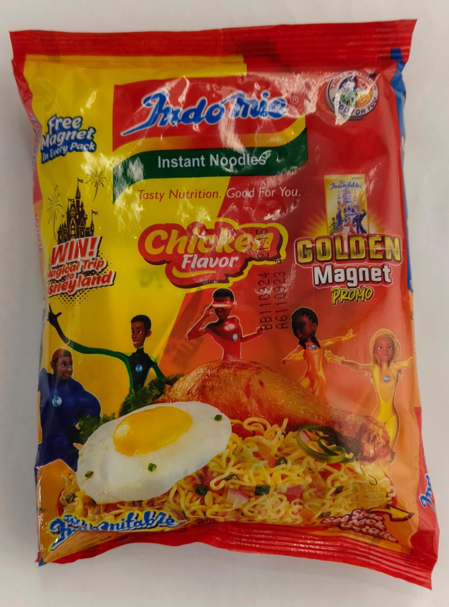 Indomie Chicken Flavour Noodles. is a halal product which is available in 70g pack. It is made of wheat flour, vegetable oil, and salt among other ingredients